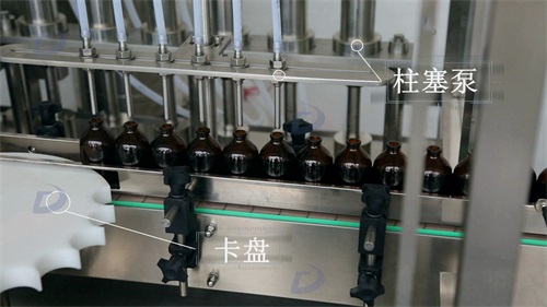 柱塞式計量泵定量灌裝,灌裝針頭設(shè)有防滴漏裝置,精度高