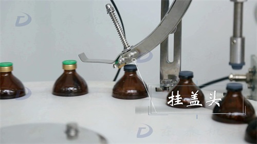 瓶子在經(jīng)過掛蓋頭時被掛上蓋子